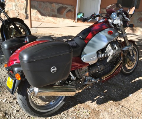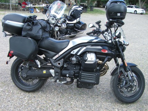 He road in from AZ with us on his Griso 8V . Packed with camping gear, Ham radio, pies, cigars and God knows what else!